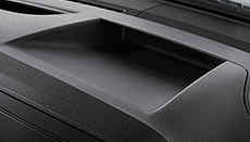 Приборная панель располагает двумя подстаканниками и тремя открытыми, под лобовым стеклом прикрытыми вещевыми отделениями для быстрого размещения документов.